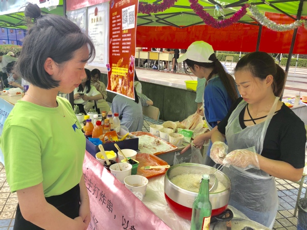 汉服社、兰亭书协、手工协会、武术协会等学生社团展现了中华传统文化社团的刚柔与雅美。衢州市第六届“礼遇衢职 创赢未来”大学生工商模拟市场大赛正在思齐广场上进行,在衢州市委市政府创建“南孔圣地 衢州有礼”城市品牌的大背景下,开设“有礼一条街”,将衢州“礼”文化的精髓融入到校园文化,让广大青年学生在参赛的同时能成为“有礼衢职人”,真正做到文化自信。星巴克、泰隆银行等校企合作企业的优秀毕业生代表向大家展示了我校校企合作成果,经济管理学院“杜拉拉训练营”的同学向大家汇报职场文化、白领文化的训练成果,花为你开、南孔爷爷等项目都进入到大学生工商模拟市场大赛的舞台。很多市民朋友带着孩子们“赶集”来了,李梦然小朋友抓完鱼之后,在榨汁店买了一杯西瓜汁和她的小伙伴分享。工模大赛通过真实的市场检验,进一步强化了学生们的创业水平与营销能力。