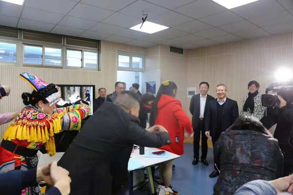 参观智慧教室时,徐文光与衢江平武劳务协作农村致富带头人能力提升培训班的学员们进行亲切的交谈,了解学员们的培训情况并鼓励学员们要勇于创新。临别时,学员们在授课的台湾专家李承翰的带领下,按照“衢州有礼”的方式,向徐文光书记行作揖礼,他以同样的方式向大家回礼。