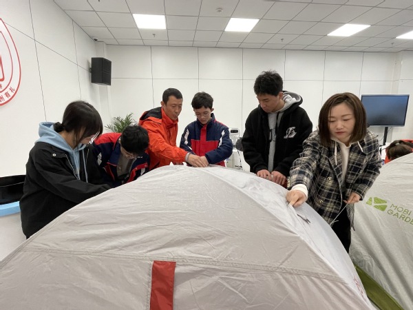 衢州市特殊教育学校马学群同学平时酷爱运动,他是这次课程的志愿者。他听了王俊舰的课,并和衢职院休闲体育专业的学生交流,学到了知识,也交到了朋友。市民张丹提早半个小时带着女儿来到课堂,她们跟着老师学习搭帐篷、打绳结。参加活动的学员都意犹未尽,和老师相约,下次到户外“实战”,体验户外露营的快乐。