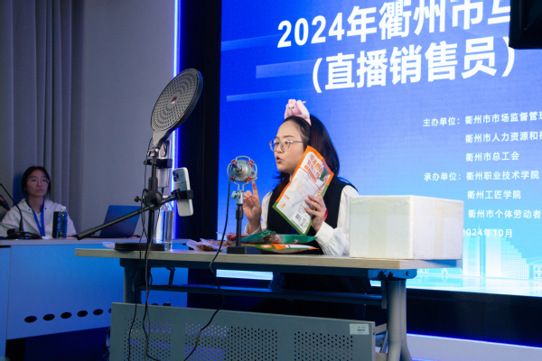 为认真贯彻落实省、市全面加强“三支队伍”建设的总体要求,全面提升个体劳动者技能素质、技能水平和就业创业能力,近日,由衢州市市场监督管理局、衢州市人力资源和社会保障局、衢州市总工会主办,我校、衢州工匠学院承办,衢州市个体劳动者协会协办的2024年衢州市互联网营销师(直播销售员)和短视频制作技能竞赛在我校顺利举行。