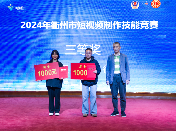 当天下午,在我校图书馆1号报告厅举办颁奖仪式。衢州市市场监督管理局党委书记、局长毛霄云,党委副书记、副局长樊勇军,衢州市总工会党组成员、副主席杨川丹,衢州市人力社保局四级调研员黄祖愿,我校党委委员、副校长徐浪静为获奖选手颁奖。