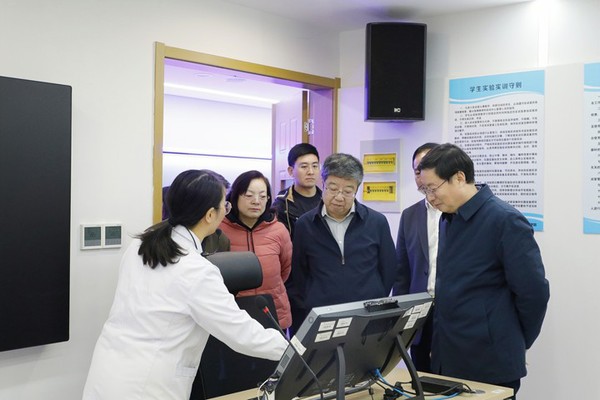 专家领导们实地调研了学校医护康养实训中心、大健康公共实训中心、共富学院,详细了解了增强现实AR教学软件,虚拟仿真系统下的针灸、推拿手法,以及医护康养专业群建设、实训基地建设、社会培训等情况,对我校充分发挥优势,积极运用虚拟仿真等前沿技术,擦亮针灸文化“金名片”,助推中医药事业高质量发展的做法和成效表示肯定。