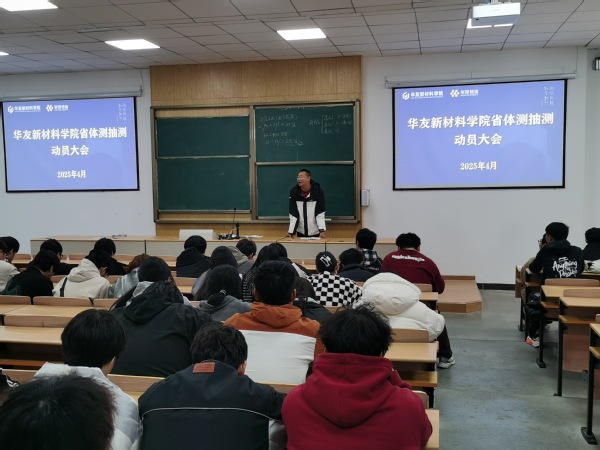 为积极响应省体质抽测工作安排,贯彻落实学校相关部署,激励学生提高身体素质,4月2日中午,华友新材料学院召开浙江省体质抽测学生动员大会,学院党总支副书记吴忠、孔慧兰、校公体部教师赵小龙、吴笑阳,以及全体24级学生、班主任、辅导员参加了会议。