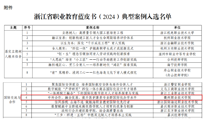 我校医护康养专业群国际化办学案例入选《浙江省职业教育蓝皮书(2024)》典型案例
